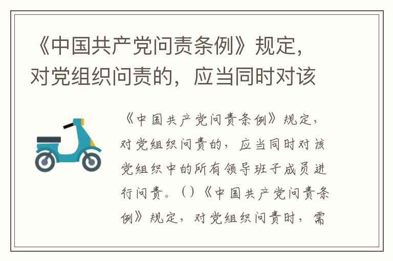 《中国共产党问责条例》规定,对党组织问责时,需同时对该党组织中负有责任的领导班子成员进行问责,而非“所有领导班子成员”。这一规定体现了“权责对等”原则,要求根据领导班子成员在失职失责事件中的具体责任分工实施问责,而非简单“一刀切”。