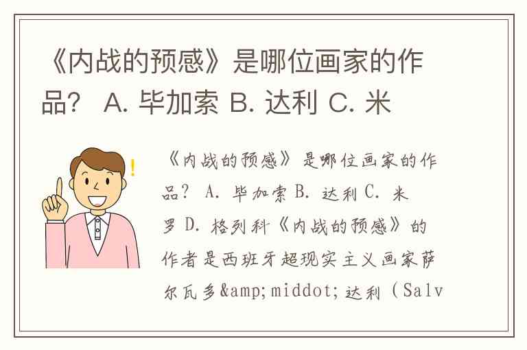 《内战的预感》是哪位画家的作品? A. 毕加索 B. 达利 C. 米罗 D. 格列科