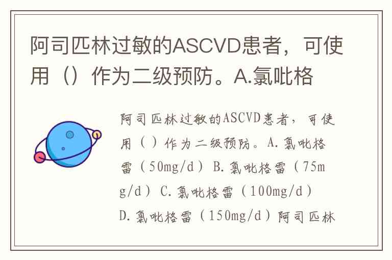 阿司匹林过敏的ASCVD患者,可使用()作为二级预防。A.氯吡格雷(50mg/d) B.氯吡格雷(75mg/d) C.氯吡格雷(100mg/d) D.氯吡格雷(150mg/d)