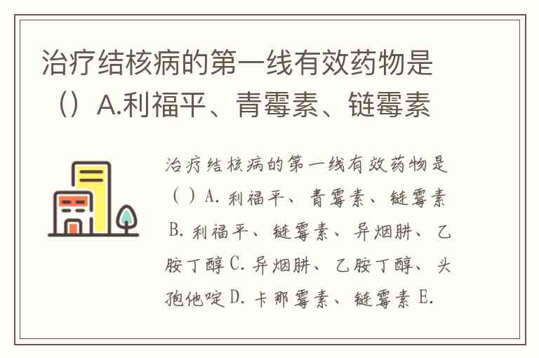 治疗结核病的第一线有效药物是()A.利福平、青霉素、链霉素 B.利福平、链霉素、异烟肼、乙胺丁醇 C.异烟肼、乙胺丁醇、头孢他啶 D.卡那霉素、链霉素 E.亚胺培南、卡那霉素
