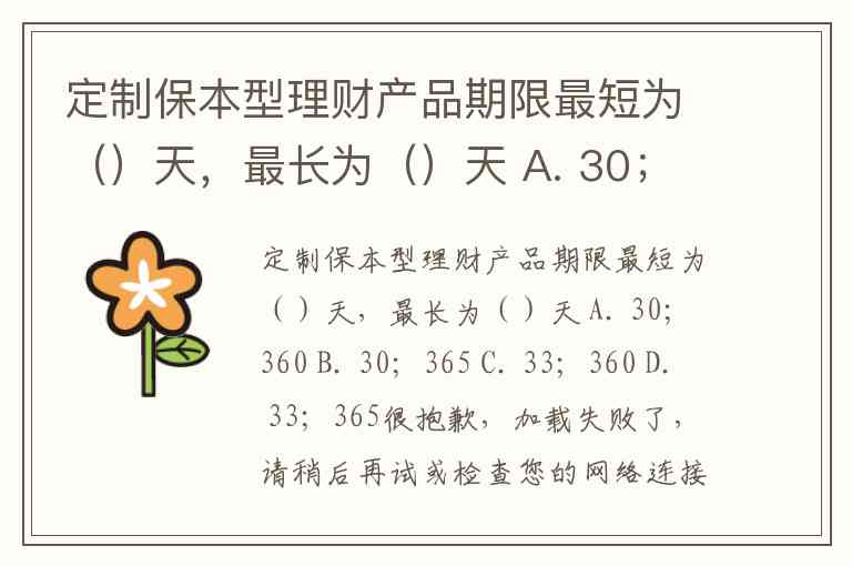 定制保本型理财产品期限最短为()天,最长为()天 A. 30;360 B. 30;365 C. 33;360 D. 33;365