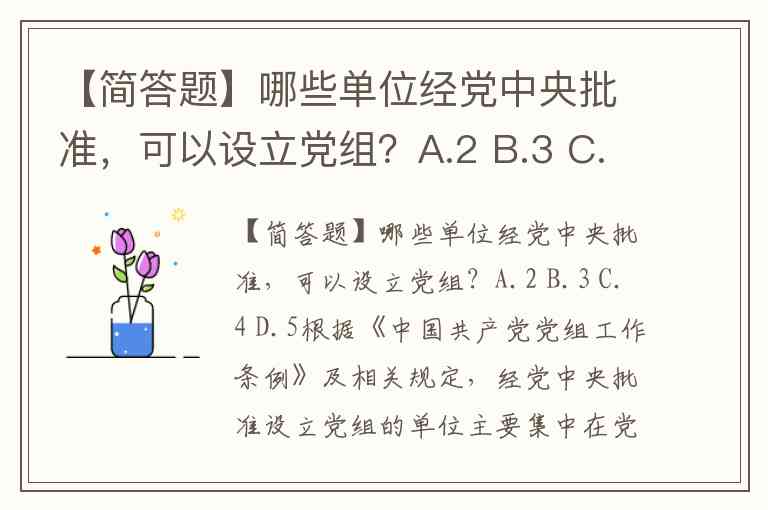 【简答题】哪些单位经党中央批准,可以设立党组?A.2 B.3 C.4 D.5