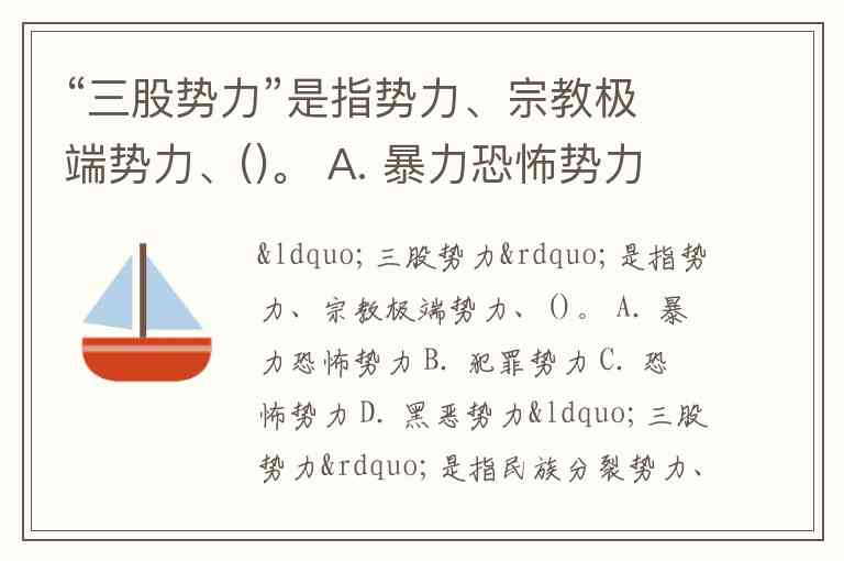 “三股势力”是指势力、宗教极端势力、()。 A. 暴力恐怖势力 B. 犯罪势力 C. 恐怖势力 D. 黑恶势力