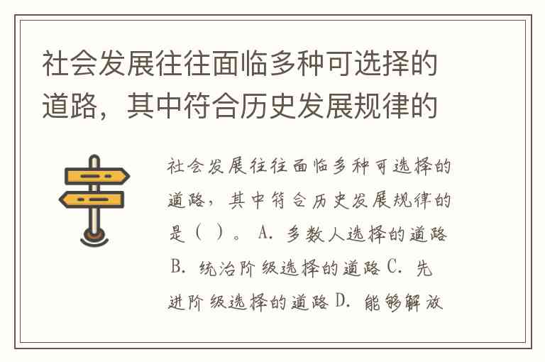 社会发展往往面临多种可选择的道路,其中符合历史发展规律的是( )。 A. 多数人选择的道路 B. 统治阶级选择的道路 C. 先进阶级选择的道路 D. 能够解放和发展生产力的道路