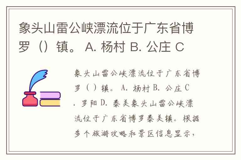 象头山雷公峡漂流位于广东省博罗()镇。 A. 杨村 B. 公庄 C. 罗阳 D. 泰美