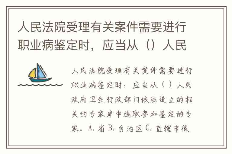 人民法院受理有关案件需要进行职业病鉴定时,应当从()人民政府卫生行政部门依法设立的相关的专家库中选取参加鉴定的专家。A.省 B.自治区 C.直辖市