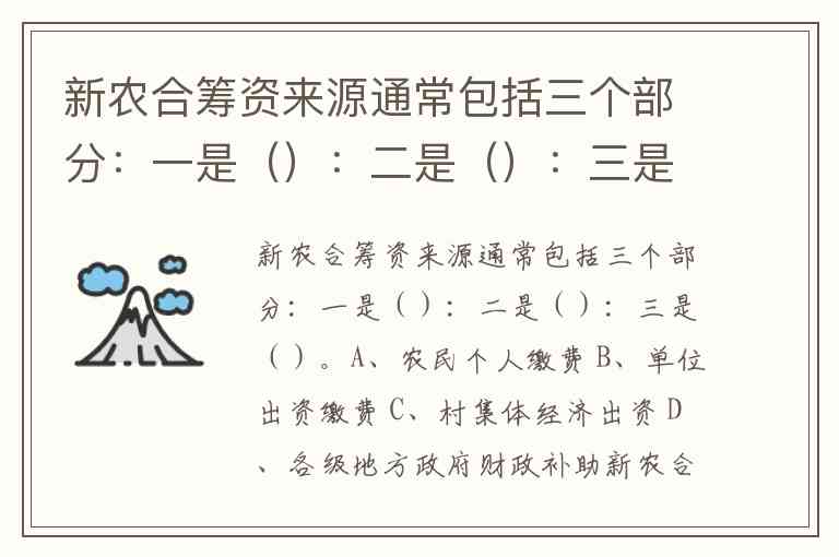 新农合筹资来源通常包括三个部分:一是():二是():三是()。A、农民个人缴费 B、单位出资缴费 C、村集体经济出资 D、各级地方政府财政补助