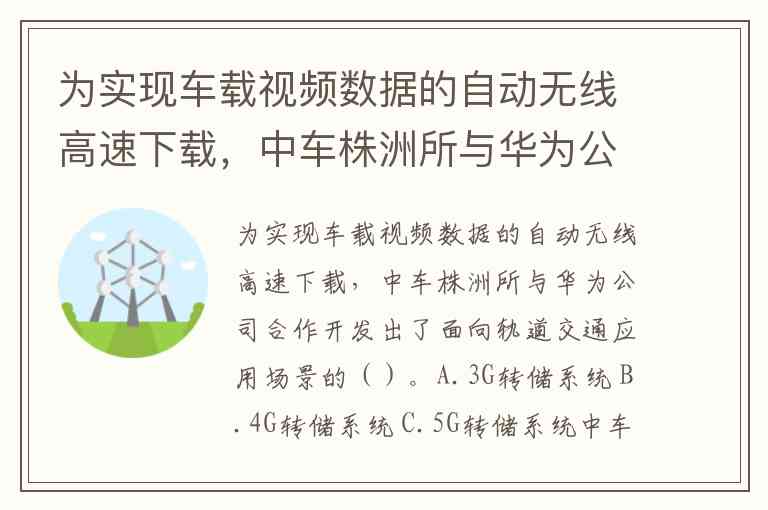 为实现车载视频数据的自动无线高速下载,中车株洲所与华为公司合作开发出了面向轨道交通应用场景的()。A.3G转储系统 B.4G转储系统 C.5G转储系统