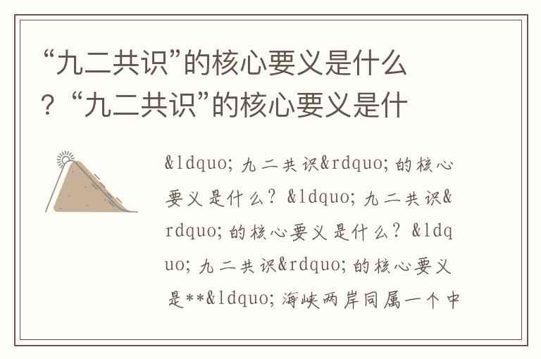 “九二共识”的核心要义是什么?“九二共识”的核心要义是什么?