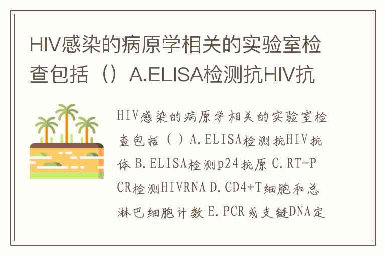 HIV感染的病原学相关的实验室检查包括()A.ELISA检测抗HIV抗体 B.ELISA检测p24抗原 C.RT-PCR检测HIVRNA D.CD4+T细胞和总淋巴细胞计数 E.PCR或支链DNA定量分析HIVRNA