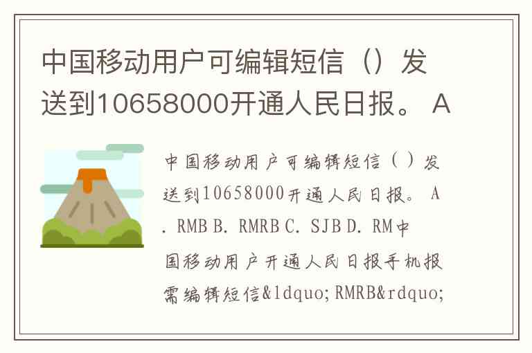中国移动用户可编辑短信()发送到10658000开通人民日报。 A. RMB B. RMRB C. SJB D. RM