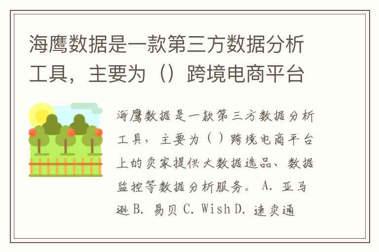 海鹰数据是一款第三方数据分析工具,主要为()跨境电商平台上的卖家提供大数据选品、数据监控等数据分析服务。 A. 亚马逊 B. 易贝 C. Wish D. 速卖通 E. Shopee