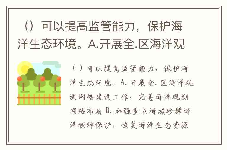 ()可以提高监管能力,保护海洋生态环境。A.开展全.区海洋观测网络建设工作,完善海洋观测网络布局 B.加强重点海域珍稀海洋物种保护,恢复海洋生态资源 C.打造中国南方海洋科技城,积极发展海洋科技服务业 D.建成全海域覆盖的在线监测观测监管体系