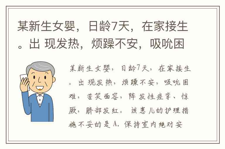 某新生女婴,日龄7天,在家接生。出 现发热,烦躁不安,吸吮困难,苦笑面容,阵 发性痉挛、惊厥,脐部发红。 该患儿的护理措施不妥的是 A. 保持室内绝对安静 B. 保持呼吸道通畅 C. 保证能量供应 D. 每2小时测体温、心率 E. 防止发生骨折