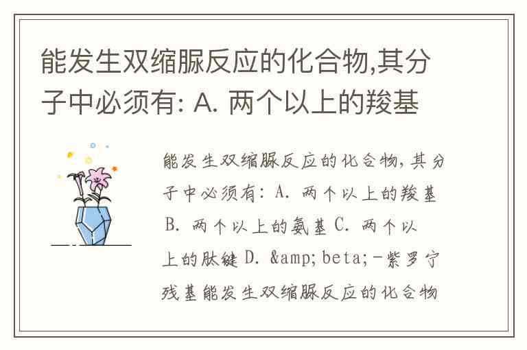 能发生双缩脲反应的化合物,其分子中必须有: A. 两个以上的羧基 B. 两个以上的氨基 C. 两个以上的肽键 D. β-紫罗宁残基