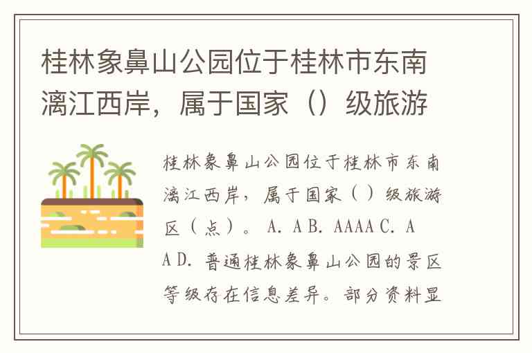 桂林象鼻山公园位于桂林市东南漓江西岸,属于国家()级旅游区(点)。 A. A B. AAAA C. AA D. 普通