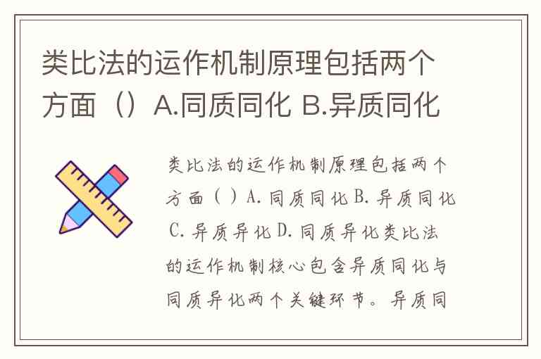 类比法的运作机制原理包括两个方面()A.同质同化 B.异质同化 C.异质异化 D.同质异化