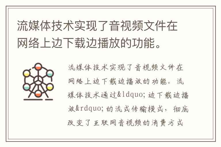 流媒体技术实现了音视频文件在网络上边下载边播放的功能。