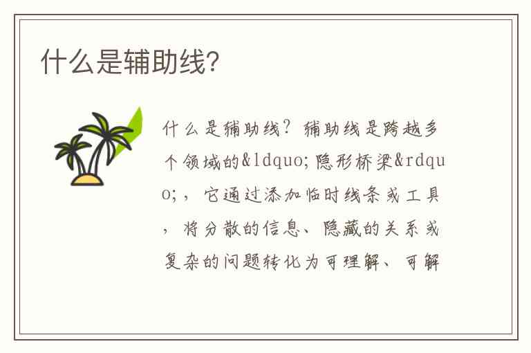 辅助线是跨越多个领域的“隐形桥梁”,它通过添加临时线条或工具,将分散的信息、隐藏的关系或复杂的问题转化为可理解、可解决的形式。在数学中,它是连接已知条件与待证结论的逻辑纽带;在设计与艺术中,它是构建比例、透视与平衡的视觉骨架;在教育领域,它又成为梳理知识结构、引导思考路径的认知工具。