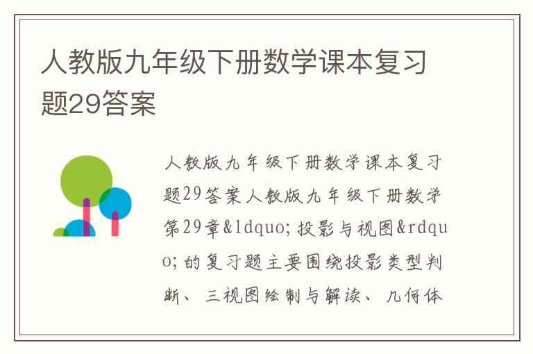 人教版九年级下册数学课本复习题29答案