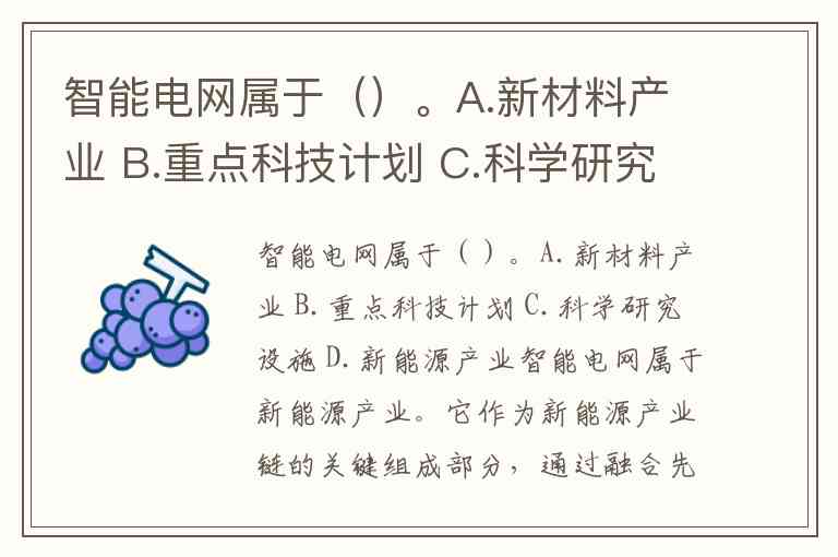 智能电网属于()。A.新材料产业 B.重点科技计划 C.科学研究设施 D.新能源产业