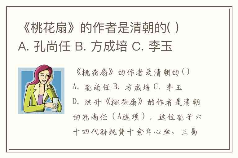 《桃花扇》的作者是清朝的( ) A. 孔尚任 B. 方成培 C. 李玉 D. 洪升