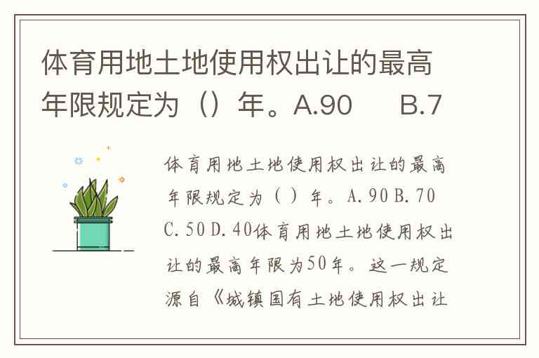 体育用地土地使用权出让的最高年限规定为()年。A.90 B.70 C.50 D.40