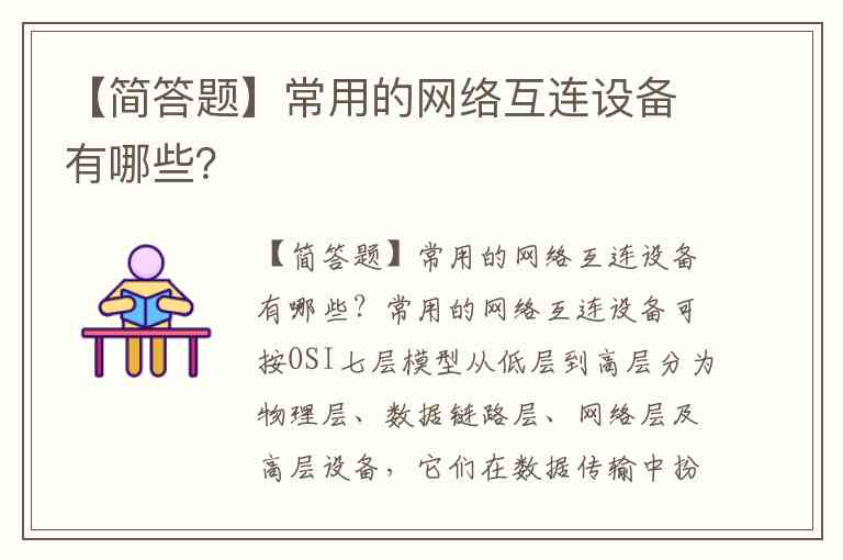 常用的网络互连设备可按OSI七层模型从低层到高层分为物理层、数据链路层、网络层及高层设备,它们在数据传输中扮演不同角色,解决不同范围的网络连接问题。