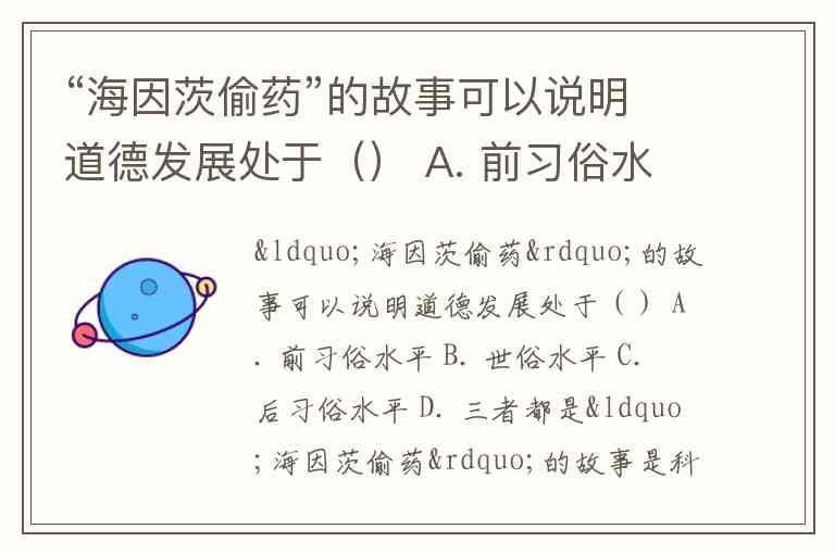 “海因茨偷药”的故事可以说明道德发展处于() A. 前习俗水平 B. 世俗水平 C. 后习俗水平 D. 三者都是