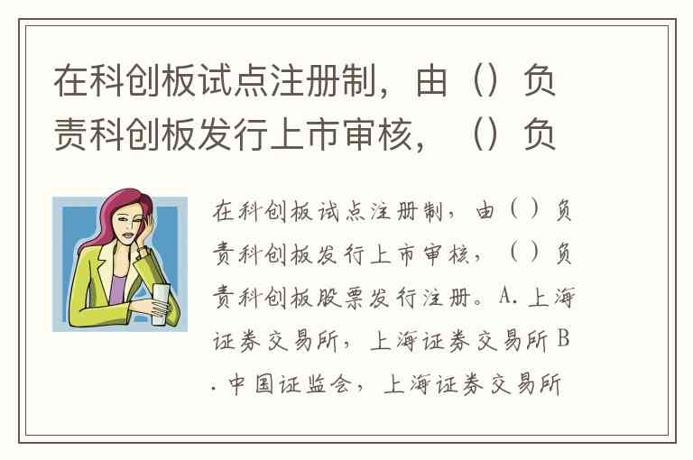 在科创板试点注册制,由()负责科创板发行上市审核,()负责科创板股票发行注册。A.上海证券交易所,上海证券交易所 B.中国证监会,上海证券交易所 C.上海证券交易所,中国证监会 D.中国证监会,中国证监会