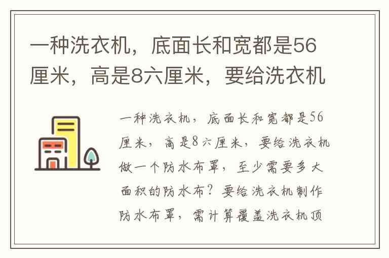 一种洗衣机,底面长和宽都是56厘米,高是8六厘米,要给洗衣机做一个防水布罩,至少需要多大面积的防水布?