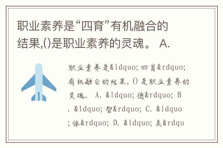 职业素养是“四育”有机融合的结果,()是职业素养的灵魂。 A. “德” B. “智” C. “体” D. “美”