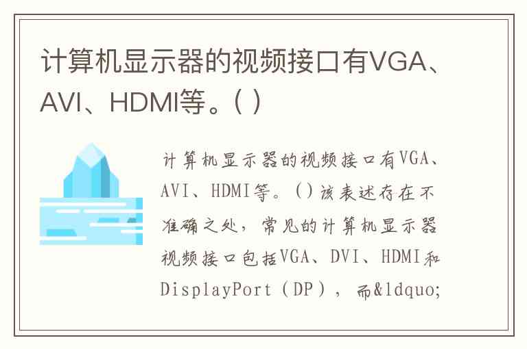 该表述存在不准确之处,常见的计算机显示器视频接口包括VGA、DVI、HDMI和DisplayPort(DP),而“AVI”并非视频接口类型,可能是对DVI接口的误写。
