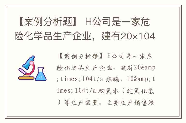【案例分析题】 H公司是一家危险化学品生产企业,建有20×104t/a 烧碱、10×104t/a 双氧水(过氧化氢)等生产装置。主要生产销售液氯、烧碱、盐酸、次氯酸钠、氢气、双氧水等危险化学品。 H公司双氧水生产采用固定床钯触媒蒽醌法工艺,主要原料为氢气、2-乙基蒽醌、磷酸三辛酯、重芳烃,催化剂为钯触媒。工作液由2-乙基蒽醌、磷酸三辛酯和重芳烃按比例配制,循环使用。生产工序为氢化、氧化、萃取及净化、后处理、配制5道工序。 氢化工序的氢化塔分3个塔节(操作压力0.3MPa),自上而下依次为上塔(A)、中塔(B)、下塔(C),既可串联运行,也可单独运行。氢化塔按II 类压力容器设计制造,其设计、制造、安装及管理符合特种设备管理要求。烧碱装置的生产工序:盐水精制、电解、氢气处理、氯气干燥、氯气液化充装、碱液蒸发浓缩、盐酸合成。主要设备:电解槽、氯气干燥塔、盐酸合成炉、液氯储罐(10m3,工作压力1.5MPa,5台,最大储量50t)。 安全生产监管部门在对H公司进行安全检查时发现存在下列问题: (1)销售的危险化学品未提供化学品安全技术说明书。 (2)产品包装上未粘贴、拴挂化学品安全标签。 (3)停车检修安全措施未落实。 (4)企业隐患排查治理不力。 根据以上场景,回答下列问题: 按照《化学品分类和标签规范》系列标准(GB 30000.2~GB 30000.29),双氧水属于下列物理危险分类中的()。A.有机过氧化物 B.氧化性液体 C.金属腐蚀物 D.易燃气体 E.加压气体