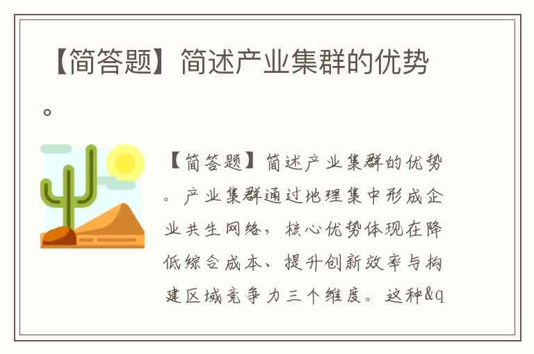 【简答题】简述产业集群的优势。