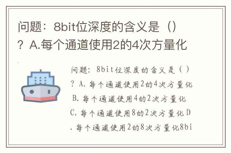 问题:8bit位深度的含义是()?A.每个通道使用2的4次方量化 B.每个通道使用4的2次方量化 C.每个通道使用8的2次方量化 D.每个通道使用2的8次方量化