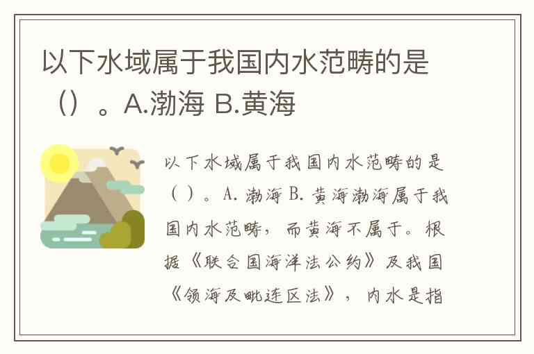 以下水域属于我国内水范畴的是()。A.渤海 B.黄海
