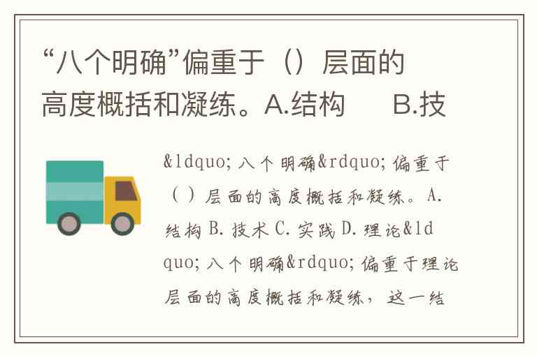 “八个明确”偏重于()层面的高度概括和凝练。A.结构 B.技术 C.实践 D.理论