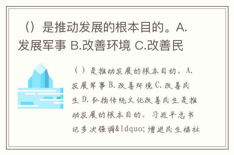 ()是推动发展的根本目的。A.发展军事 B.改善环境 C.改善民生 D.弘扬传统文化