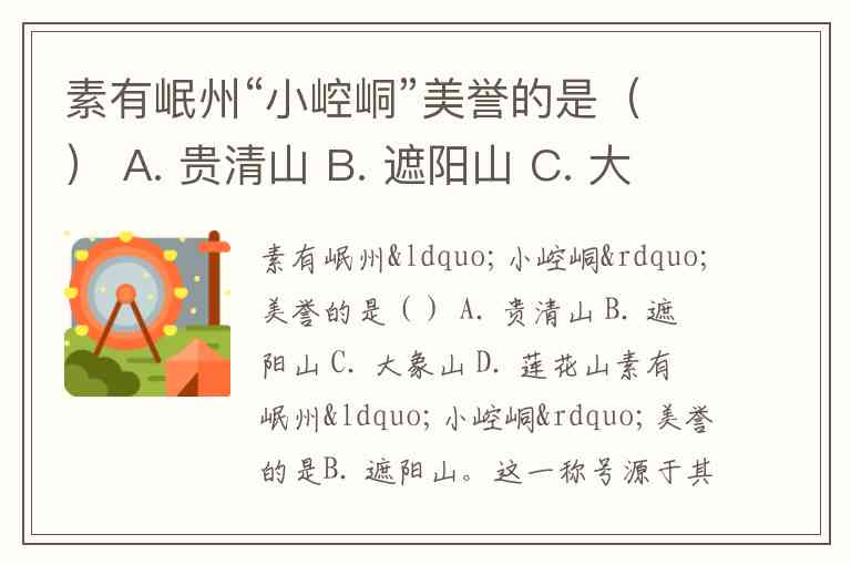素有岷州“小崆峒”美誉的是() A. 贵清山 B. 遮阳山 C. 大象山 D. 莲花山