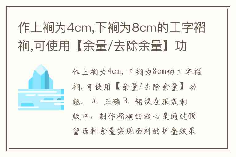 结论:制作上4cm、下8cm的工字褶裥时,需通过【余量】功能添加对应折叠量,必要时用【去除余量】调整,因此题目说法正确。