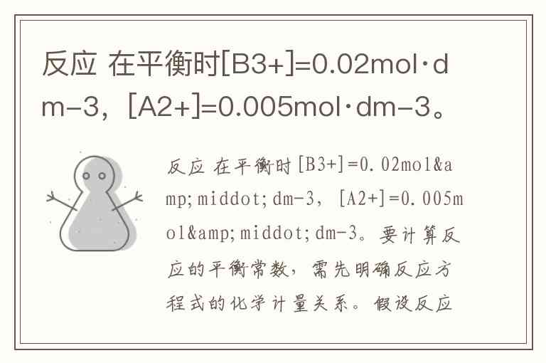 反应 在平衡时[B3+]=0.02mol·dm-3,[A2+]=0.005mol·dm-3。