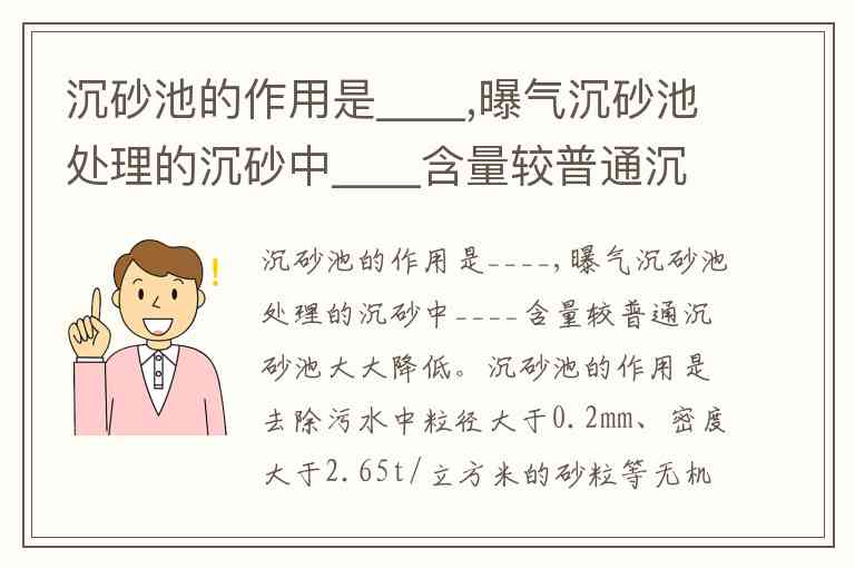沉砂池的作用是____,曝气沉砂池处理的沉砂中____含量较普通沉砂池大大降低。