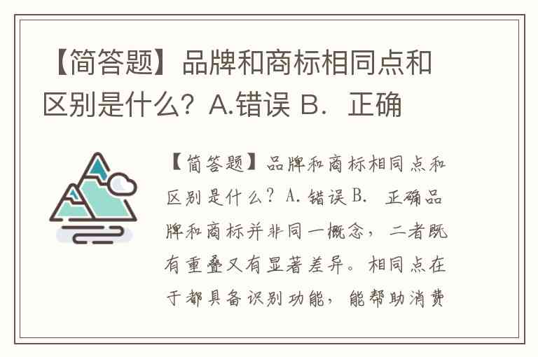 【简答题】品牌和商标相同点和区别是什么?A.错误 B.正确