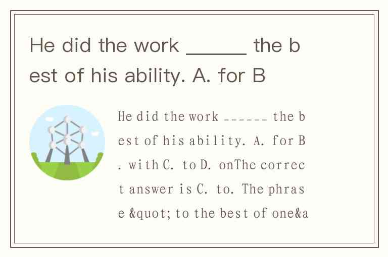 He did the work ______ the best of his ability. A. for B. with C. to D. on