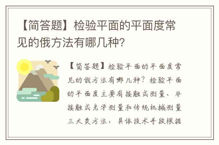 检验平面的平面度主要有接触式测量、非接触式光学测量和传统机械测量三大类方法,具体技术手段根据精度需求和应用场景选择。