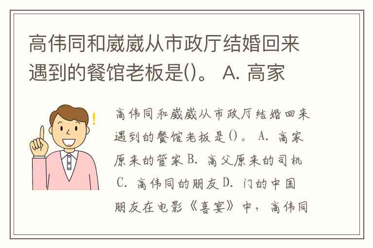 高伟同和崴崴从市政厅结婚回来遇到的餐馆老板是()。 A. 高家原来的管家 B. 高父原来的司机 C. 高伟同的朋友 D. 门的中国朋友