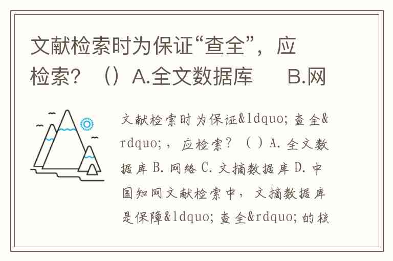 文献检索时为保证“查全”,应检索?()A.全文数据库 B.网络 C.文摘数据库 D.中国知网
