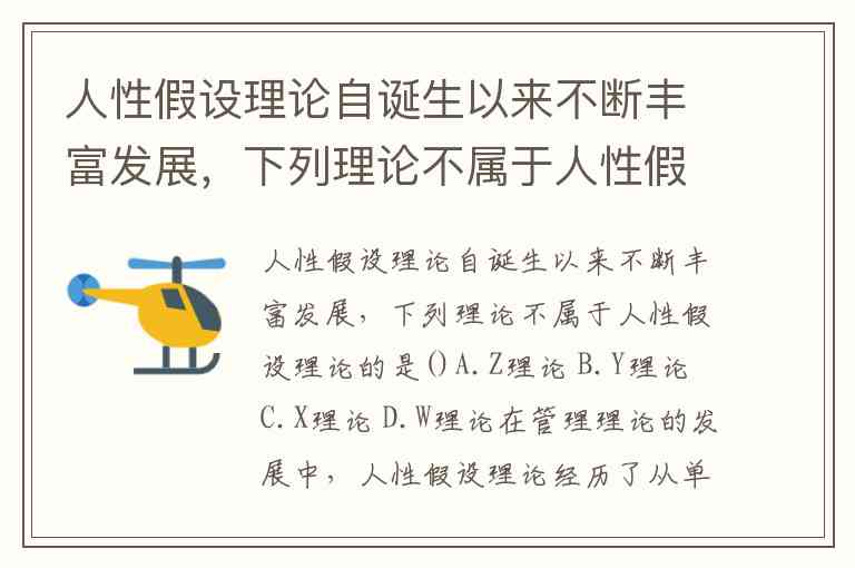 人性假设理论自诞生以来不断丰富发展,下列理论不属于人性假设理论的是()A.Z理论 B.Y理论 C.X理论 D.W理论