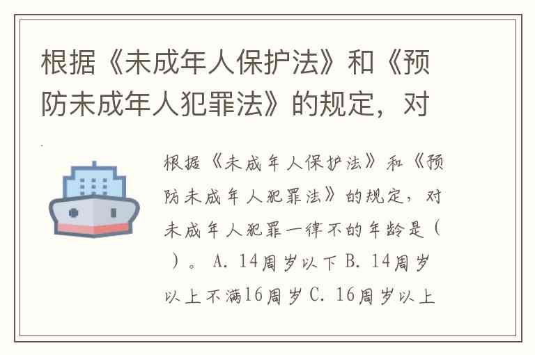 根据《未成年人保护法》和《预防未成年人犯罪法》的规定,对未成年人犯罪一律不的年龄是( )。 A. 14周岁以下 B. 14周岁以上不满l6周岁 C. 16周岁以上不满l7周岁 D. 18周岁以下
